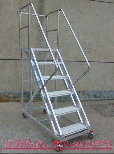 處堆取物品等動作。另外,登高車配有腳輪,可供使用者推拉轉(zhuǎn)向移動,方便快捷。其中有前腳輪上配備有輪剎,剎住后,登高車固定不可移動,使用者可放心的登高操作。