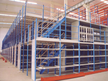 此類系統(tǒng),通常利用中型擱板式貨架或重型擱板式貨架作為主體和樓面板的支撐(根據(jù)單元貨架的總載重量來決定選用何種貨架),樓面板通常選用冷軋型鋼樓板、花紋鋼樓板或鋼格柵樓板。此類系統(tǒng)在汽車零部件領域、汽車4S店、輕工、電子等行業(yè)有較多應用。