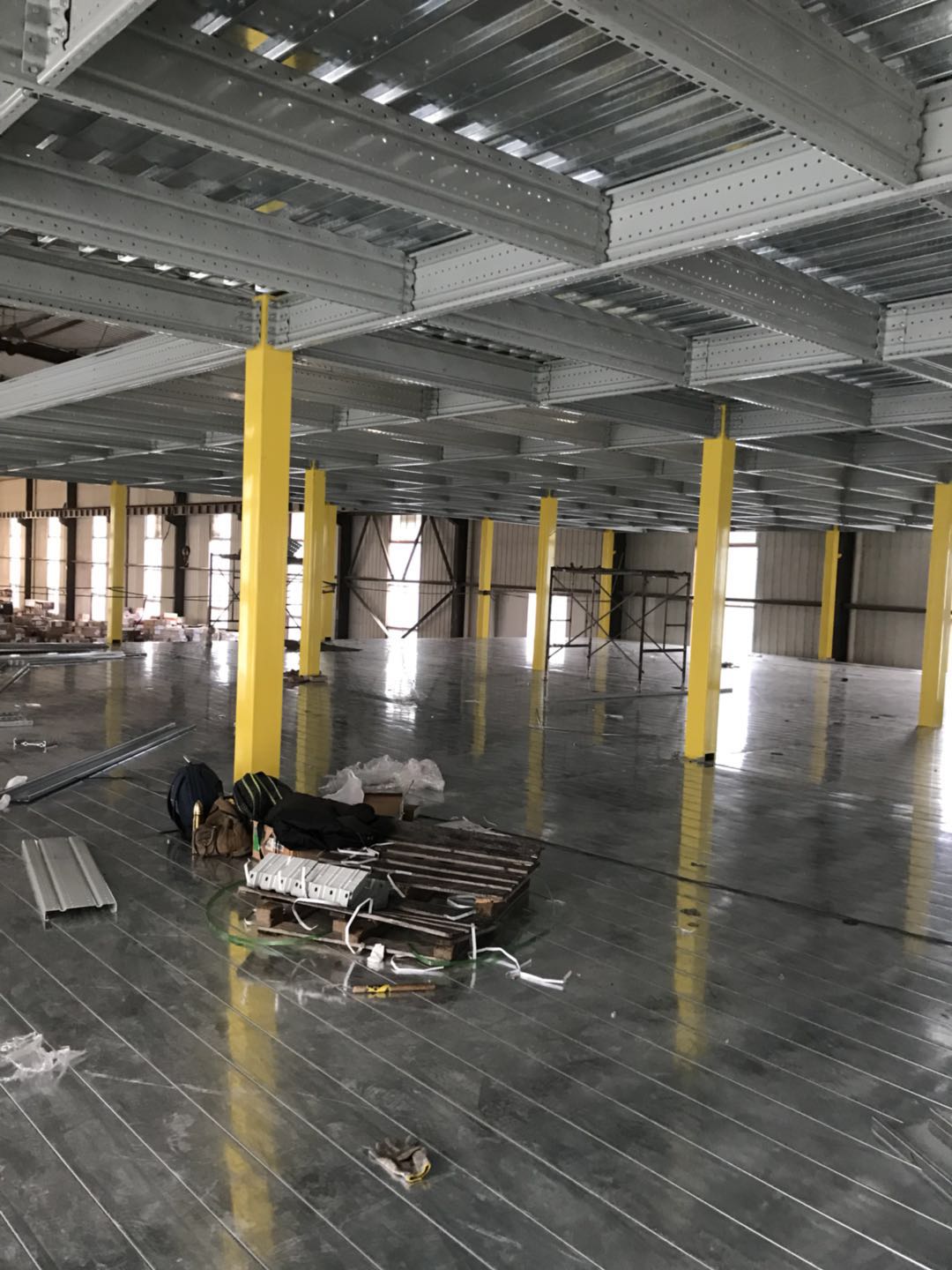 此類系統(tǒng),通常利用中型擱板式貨架或重型擱板式貨架作為主體和樓面板的支撐(根據(jù)單元貨架的總載重量來決定選用何種貨架),樓面板通常選用冷軋型鋼樓板、花紋鋼樓板或鋼格柵樓板。此類系統(tǒng)在汽車零部件領(lǐng)域、汽車4S店、輕工、電子等行業(yè)有較多應(yīng)用。