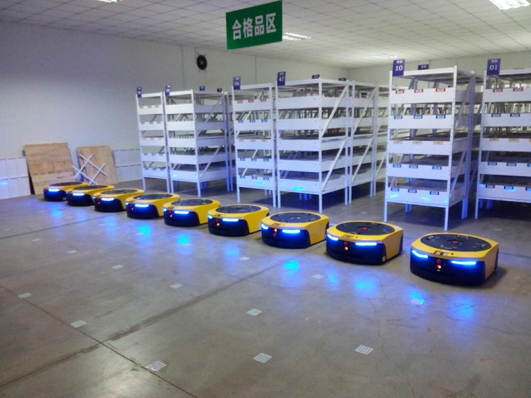 倉儲機器人是一款現(xiàn)代智能倉庫搬運機器人,它的速度可以達到80米/分。機器人采用慣性二維碼導(dǎo)航,不僅小巧靈活、而且精度高速度快;具有自動檢測障礙物,規(guī)劃路線、姿態(tài)保持等強大功能集于一身的本領(lǐng)。機器人能根據(jù)訂單,將貨物所在的貨架從巨大的倉庫存儲區(qū)搬運至員工處理區(qū),大大提高處理效率。采用機器人能夠提高近一半的倉儲處理能力。